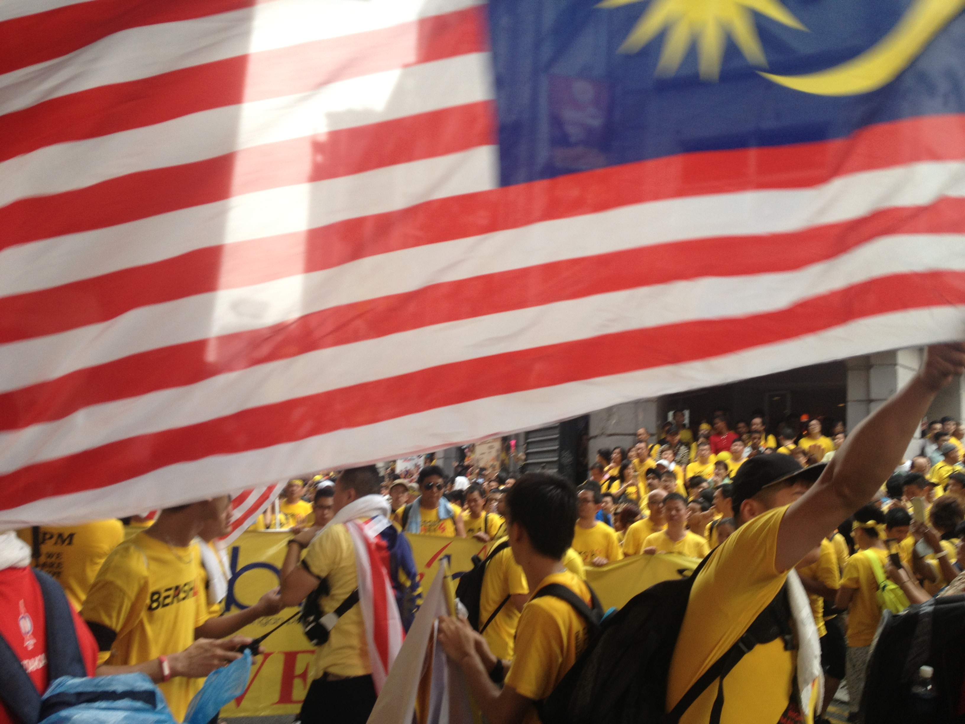 政治腐敗と宗教が関係ない点や、かなりの数のマレー系(本来このデモには関係ないとされている優遇策を取られている人種)の参加も見られることから、政府の発表のデタラメさに皆呆れているとのこと。