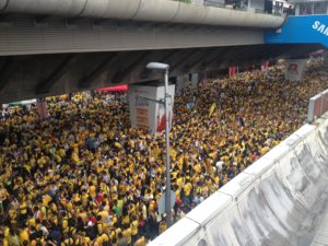 何かスローガンを叫ぶわけでもなく、ブブゼラを吹きながら「うぇーい!」と騒いで踊ったりする人も。
