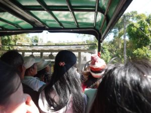 お寺に行くまでに、トラックの荷台を改造したバスに乗せられ