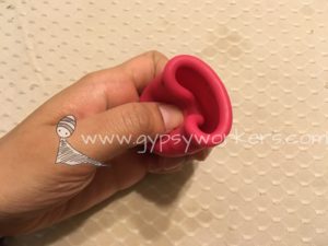 カップをきゅっと細く折りたたみ、タンポンのように挿入し、中でカップを開くと、シリコンのカップがコルクのような強力な栓になり漏れずに血液をためてくれると言うメカニズムです。
