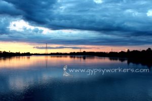 こんなに綺麗な川沿いの夕日がお出迎えしてくれました。