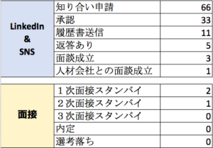 まず、LikedInでのアプローチですが、そろそろ検索すると重複することが増えたり、現在進行形の面接のお勉強や、友達作りプロジェクトもあり少しスローダウンしています。