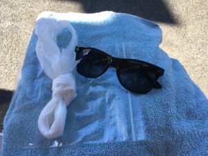 ・大判タオル。会場で顔を洗った後拭くなり、車に座る前に敷くなり色々役立ちます。これももちろん汚れます。